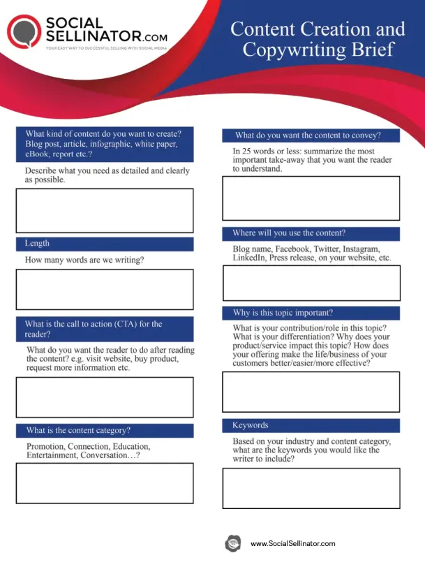 Creating content for your blog or social platforms off the cuff is rarely effective. You need to know in advance what you want to create, how long it should be, what message you want to convey, and how often you should publish. Download this fillable PDF to plan all these aspects of content creation – and more!