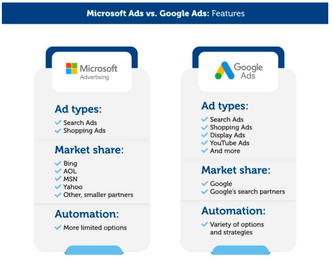Two major players dominate digital advertising: Microsoft Ads and Google Ads. Here’s a quick comparison: